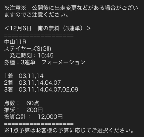 12月一発目の無料予想でも3連単万馬券当ててましたよ、結構参考にしてるサイトです。
